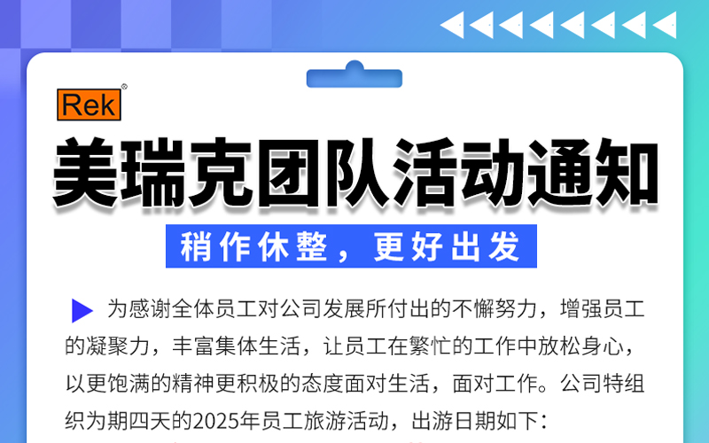 日期:2025-11-17為提升團(tuán)隊(duì)凝聚力與服務(wù)品質(zhì),美瑞克特組織為期四天的員工旅游活動,出游日期如下:2025年11月22日-25日,共4天。 期間暫停發(fā)貨事宜,如給您帶來不便,敬請諒解!美瑞克祝您生活愉快,工作順利! -