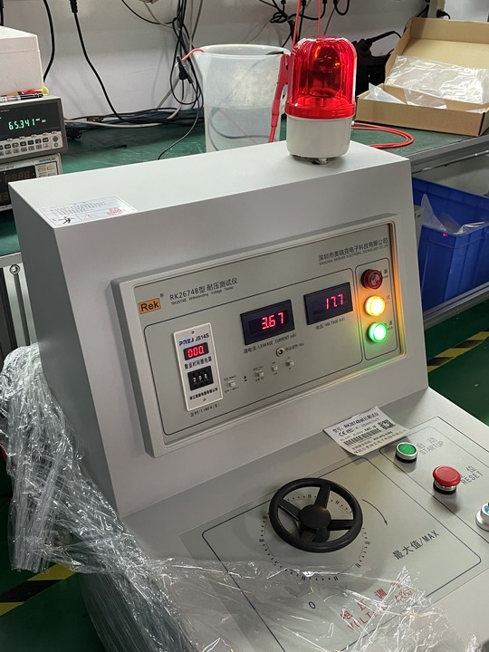 測試電源部份與接地之間的耐壓程度。測試條件:AC1500V,60s。測試結(jié)果:無擊穿和閃絡(luò)現(xiàn)象。安全防護(hù):作業(yè)員戴絕緣手套,工作臺鋪設(shè)絕緣墊,儀器妥善接地。作業(yè)員姿質(zhì):進(jìn)行崗前培訓(xùn),熟練操作儀器,能基本判別及處理儀器故障。