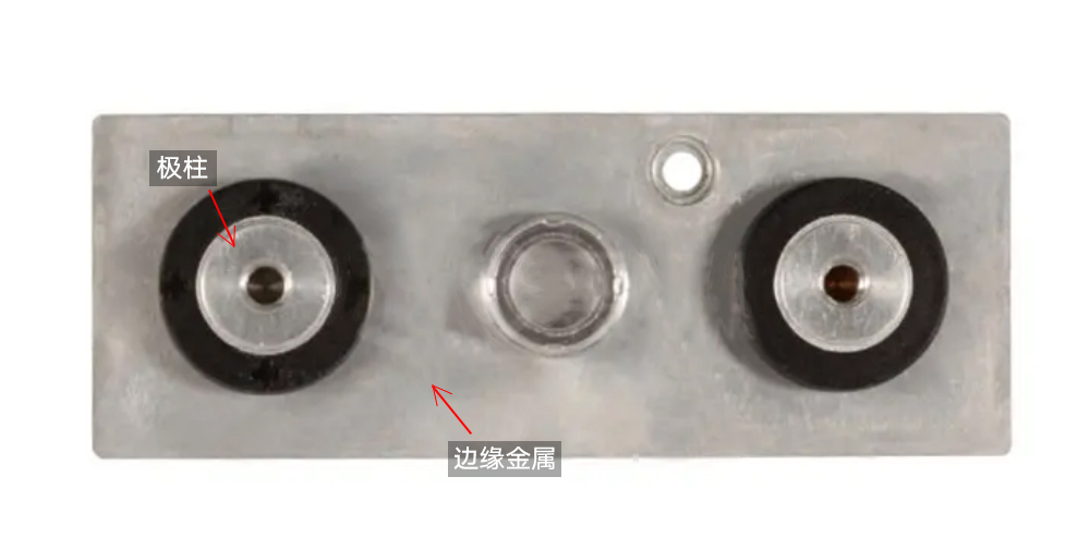 新能源-電池蓋板之耐壓測試:測試極柱與邊緣之間的耐壓程度。