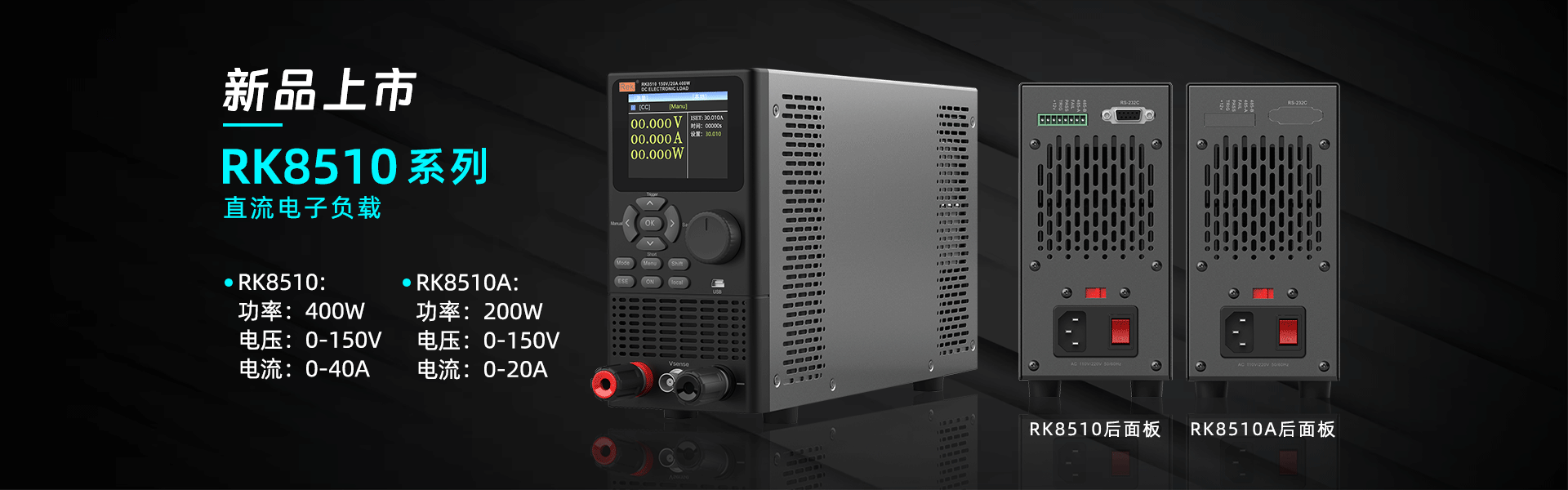 測試這些項(xiàng)目可以使用美瑞克生產(chǎn)的RK8510。RK8510最大電壓150V、最大電流40A、最大功率可達(dá)400W,支持RS232、RS485通訊,MODBUS/SCPI協(xié)議。